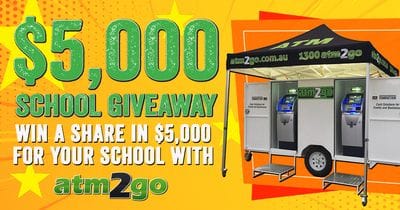 We are giving your school the chance to win a share in $5,000 cash! First prize is $3,000, second prize is $1,500 and third prize is $500. To enter, just book ATM2GO for your next school event using the $5,000 School Giveaway Booking Form and you are in the draw! Each year, we provide school events with the convenience of cash. These days, there is an expectation that people will be able access their cash, no matter where they are and no one objects to spending cash at their local school fair. It fosters great community spirit and the end result is that more money is raised, which directly improves school facilities for their children to enjoy! If you consider that the average amount dispensed by our ATMs at a school fair is $10,000, then your investment in our hire fee represents great value for money, because it provides additional cash that might otherwise not be spent at your event. If you have considered having an ATM at your event in the past, or if you have previously tried one of our competitors, then now is a great time to book with ATM2GO! Discover the benefits of having the convenience of cash at your event, experience the professional service or our ATM team, and be in the draw to win a great cash prize for your school! To enter, please click on the link below for the $5,000 School Giveaway Booking Form and complete and return this form to enquiries@atm2go.com.au by 5pm 5 July, 2019 to be in the draw. As always, ATM bookings are taken on a first come, first served basis, so please complete and send back your booking form as soon as you can so we can make sure we secure the ATMs for your event! Terms and conditions apply. Click here for the ATM2GO $5,000 School Giveaway Booking Form. |